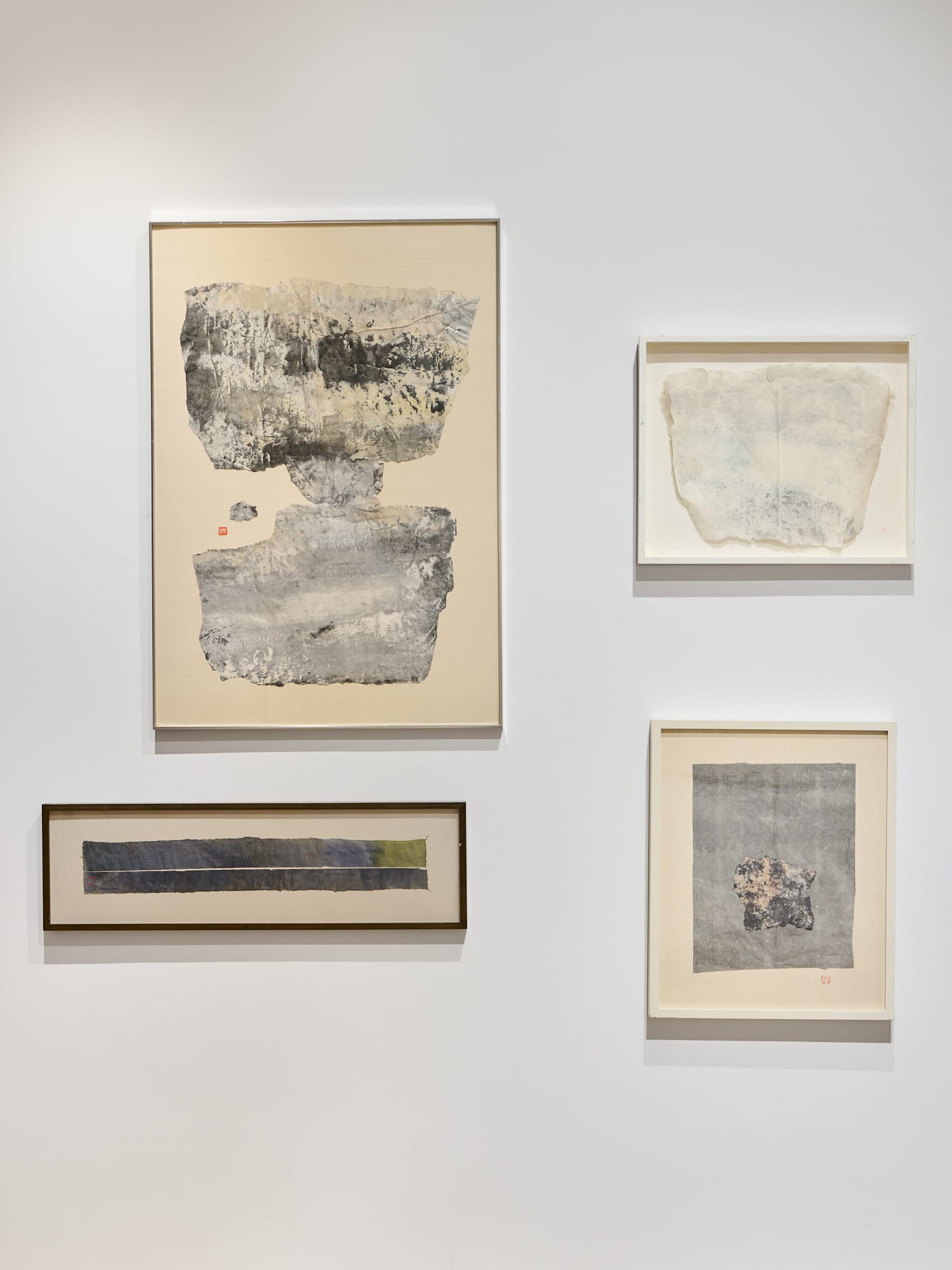 Spanning nearly half a century, these works reflect her artistic journey through the Pacific Northwest, Chicago, New York, and the American Southwest. They stand as a testament to her unwavering commitment to abstract art and her deep engagement with material experimentation. Her pieces—across various media and often accompanied by her writings and poetry—express a transformation of East Asian landscape painting, shifting from traditional compositional structures to simplified forms that emphasize texture and line.